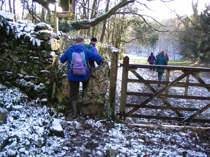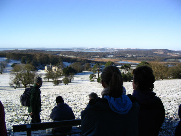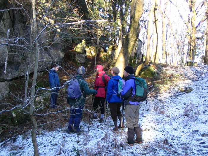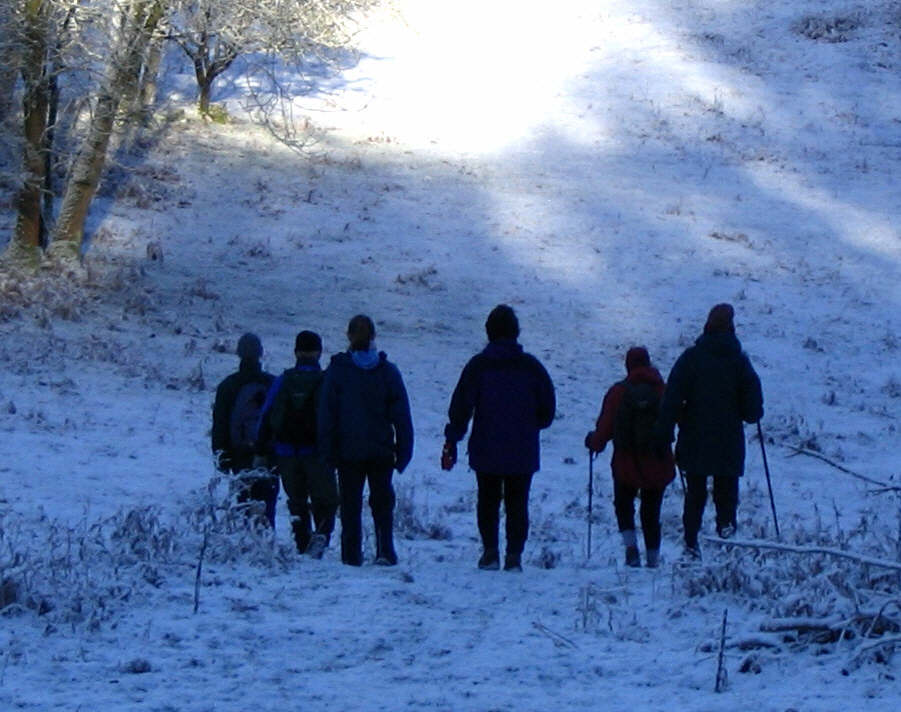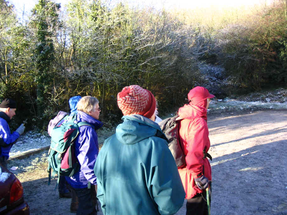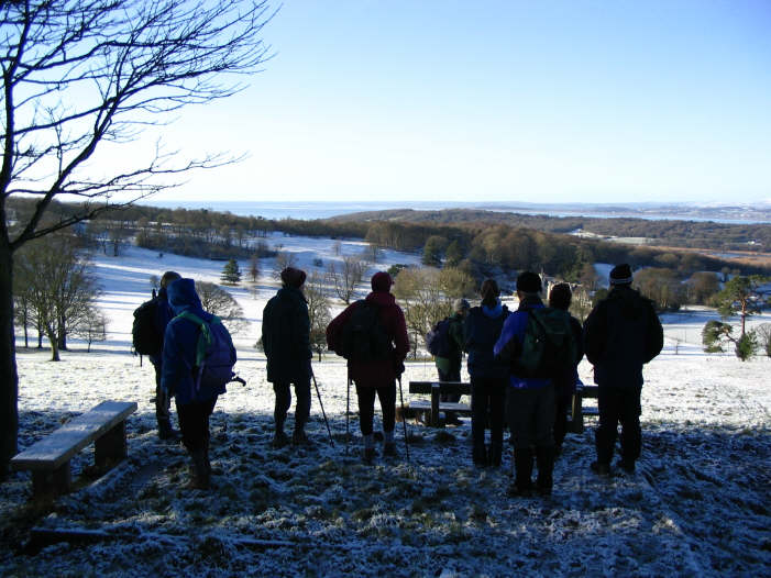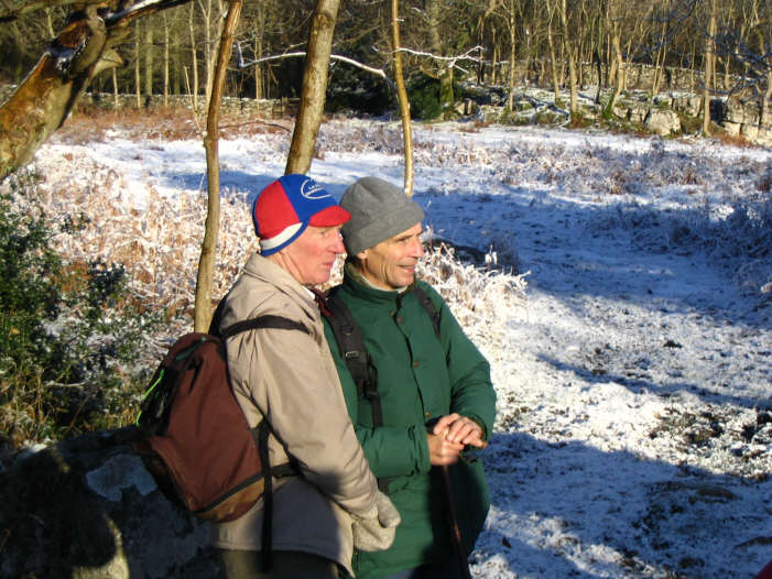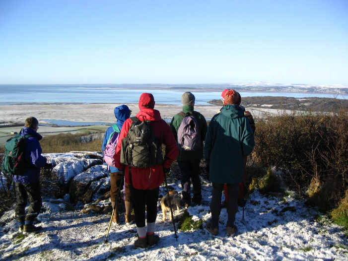A joint party of Rough-Stuff Fellowship and Lancaster CTC Section members set off from Warton Parish Car Park under the leadership of Cliff Brown, we were soon heading up various paths towards the summit of Warton Crag but before we got to summit we stop to look at the old Bronze Age Fort. With brief photo stop at the summit, also to look at view of Morecambe Bay and distance Lakeland Fells looking their best on this sunny white Christmas Boxing Day Morning.