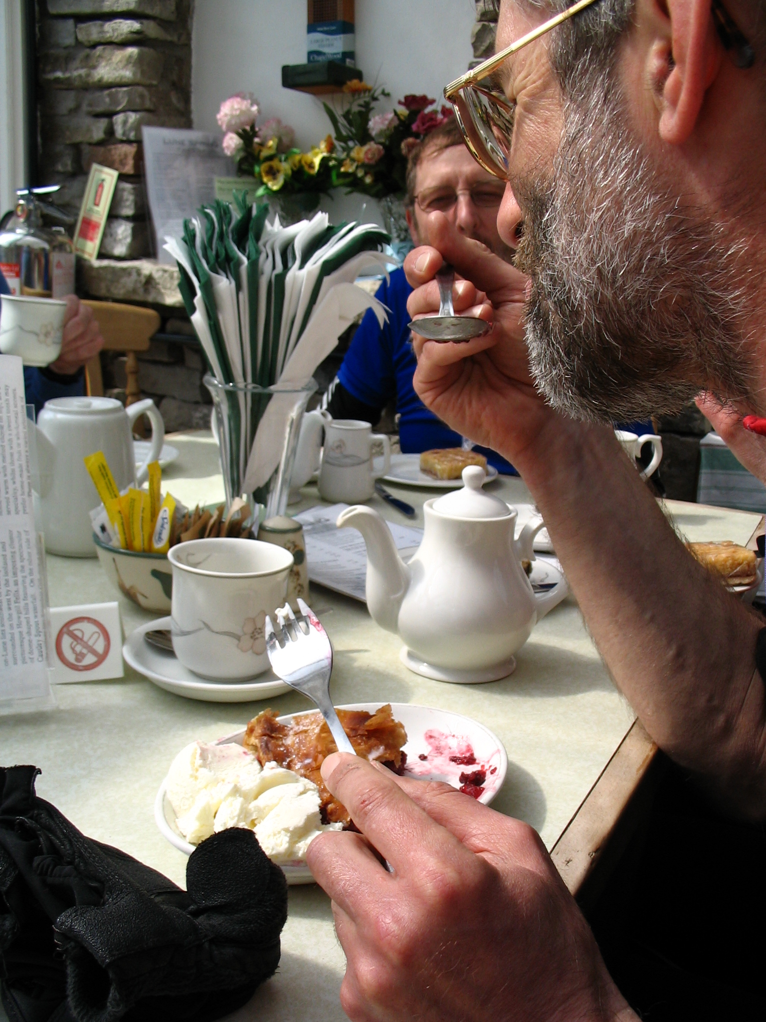 After lunch, we continue up the track up to Haybanks, then followed the road through to Drybeck village, where followed the signpost for Highfield and Gaythorne Mannor, after about mile the road turn in to a bridleway which followed past Harding’s Wood, at the junction for Gaythorne Mannor (which is worth dropping to look at!), we carry on through Fieldhouse Wood up to B6260 at Bank Moor. We follow the B6260 for short distance towards Orton before heading across Gaythorne Plain on our next track which followed through to Knots Lane in the Lune Valley; views dropping into the Lune Valley of the Howgill Fells were great! Yes you can ride this entire track. We back on the tarmac again and headed through the villages of Raisebeck, Kelleth and we stop for afternoon tea at the Garden Centre in Newbiggin-on-Lune.