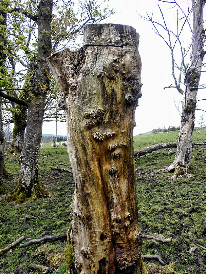 A tree stump at side of the road in Rosgill.