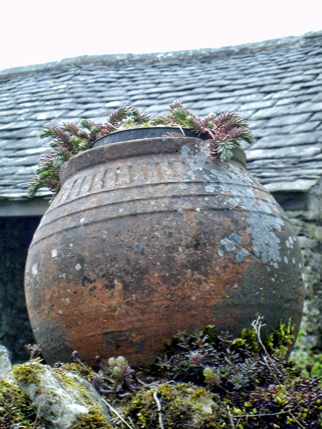 Old pot on a wall in Rosgill.
