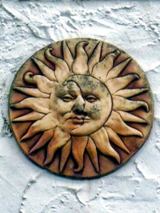 The sun on wall of a house in Shap.