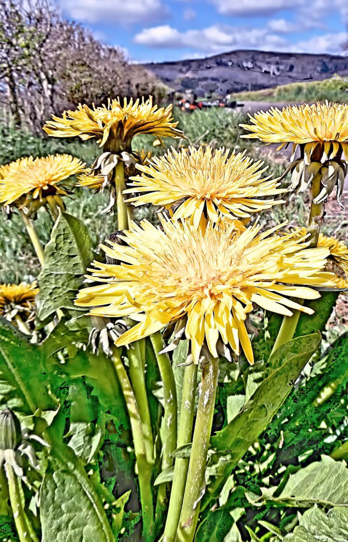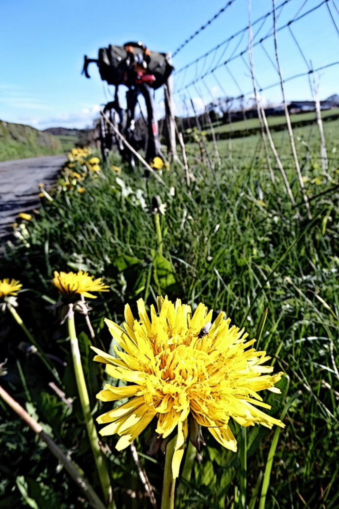 Dandelions on the tarmac bridleway to Sampool Bridge.