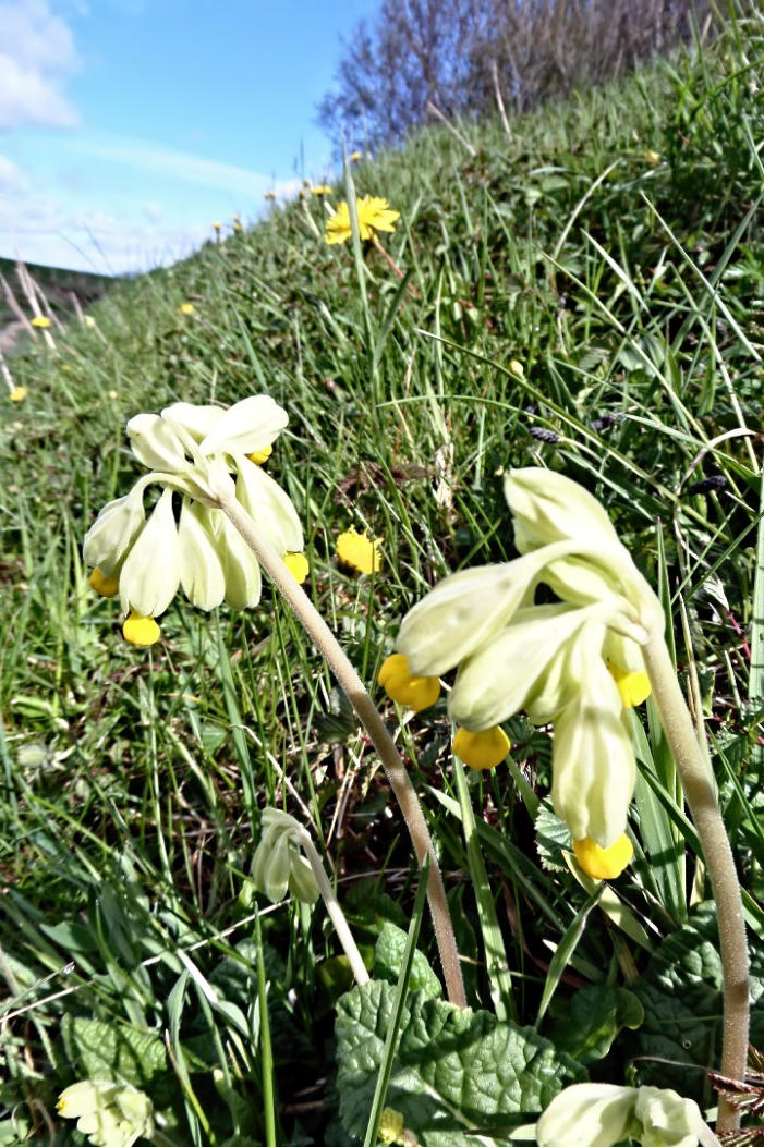 Cowslips at side of the Marsh Road across Milnthorpe Moss.