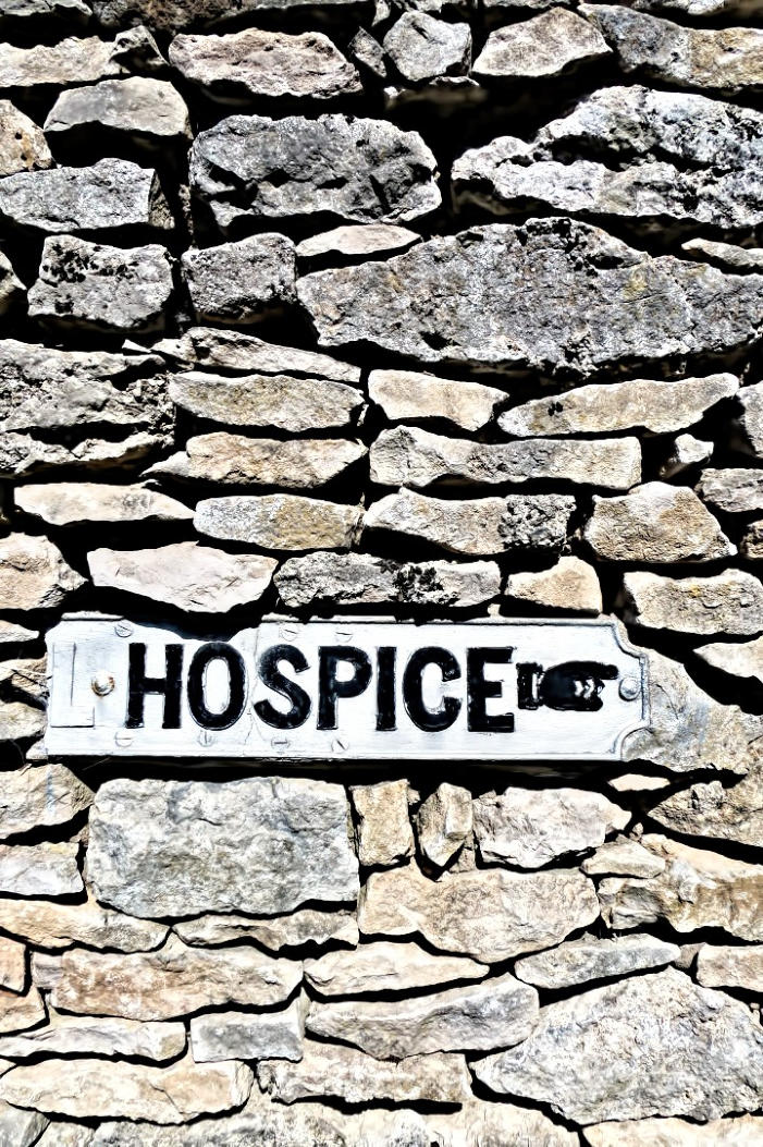 The sign in Grange-over-Sands to Hospice on top of Hampsfell.