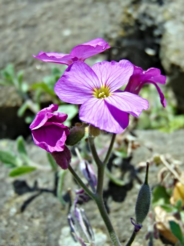Aubrieta in flower on the walls of the railway bridge at Clapham Station