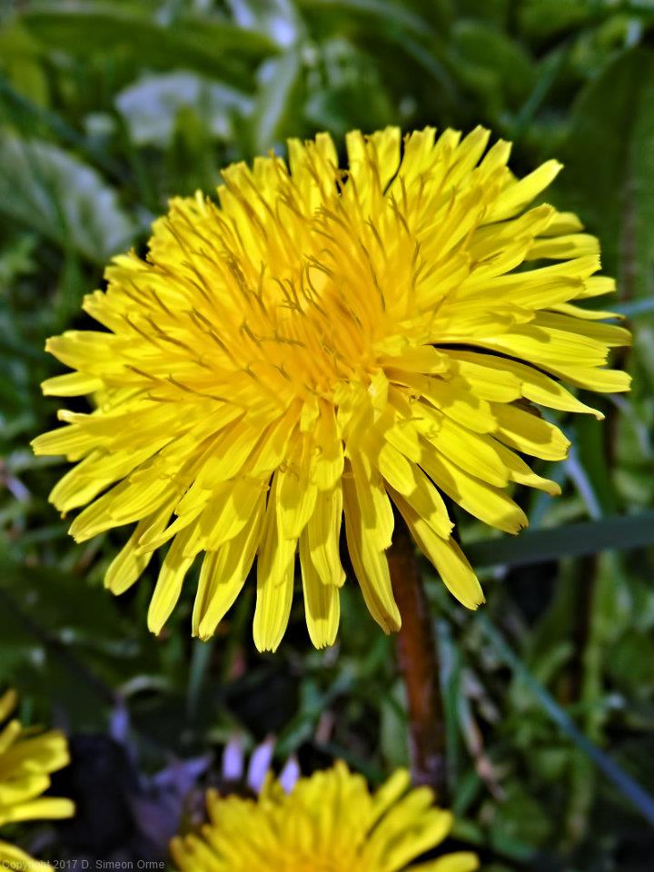 Dandelion in flower at side of the lane