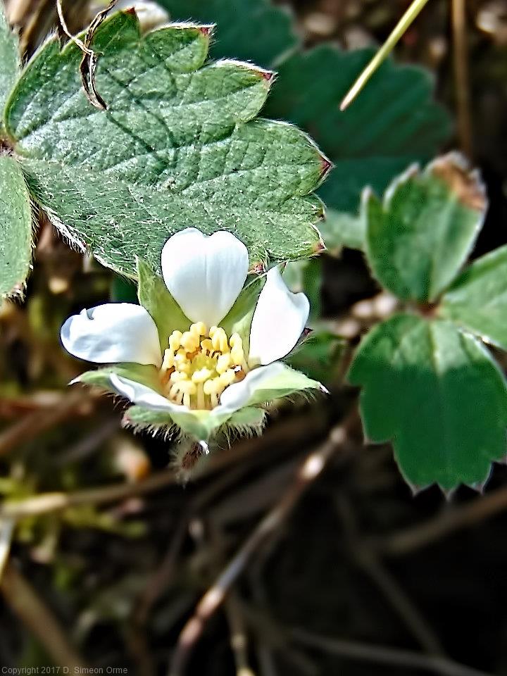 Barren Strawberry in flower at the side of lane.