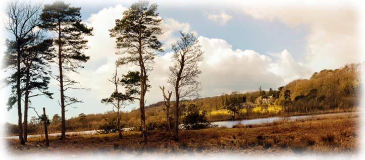 A view looking across Hawes Water towards Challan Hall (Click the photo to see a larger image of the photo)