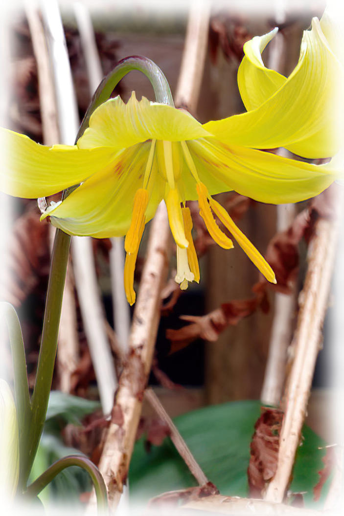 Erythronium ‘Pagoda’ flowering in the back garden.