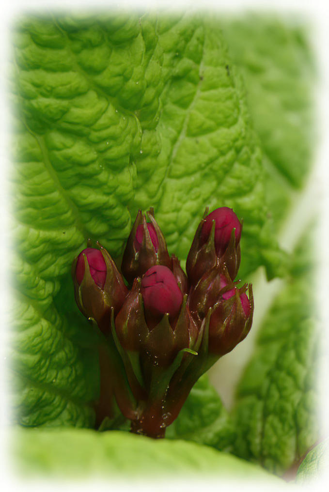 The flower buds of Primula japonica ‘Miller’s Crimson’ in the back garden