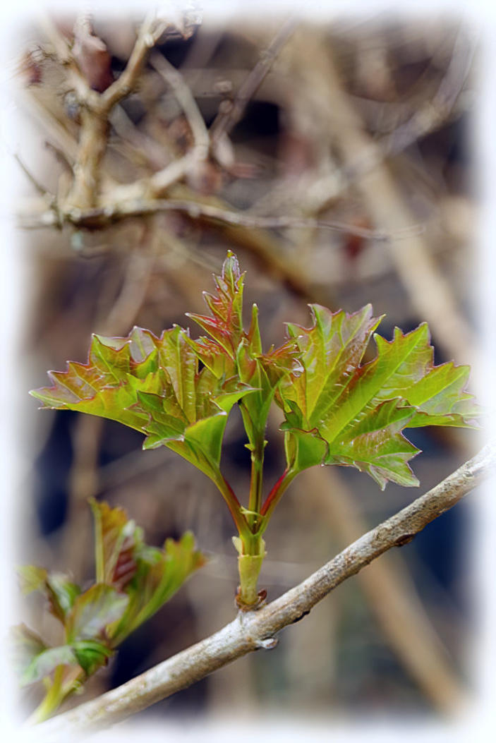 New growth on Viburnum opulus ‘Compactum’ in the back garden.