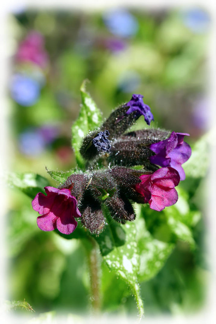 Pulmonaria ‘Diana Clare’ flowering in the back garden.