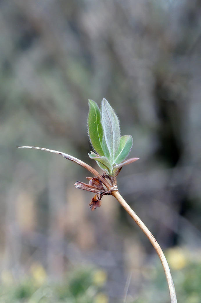 Honeysuckle shoot in the hedge at side of the Old Moor Road.