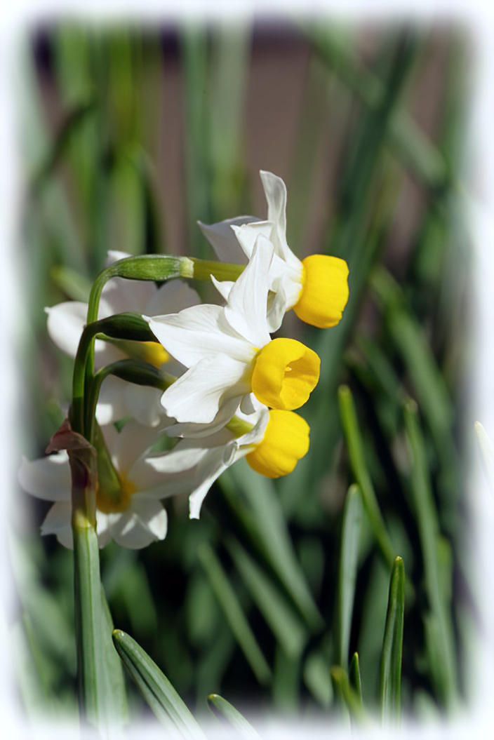 Narcissus canaliculatis flowering in container in the front garden.