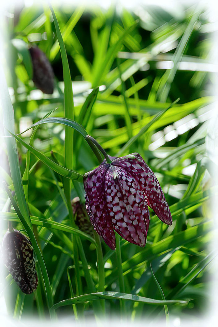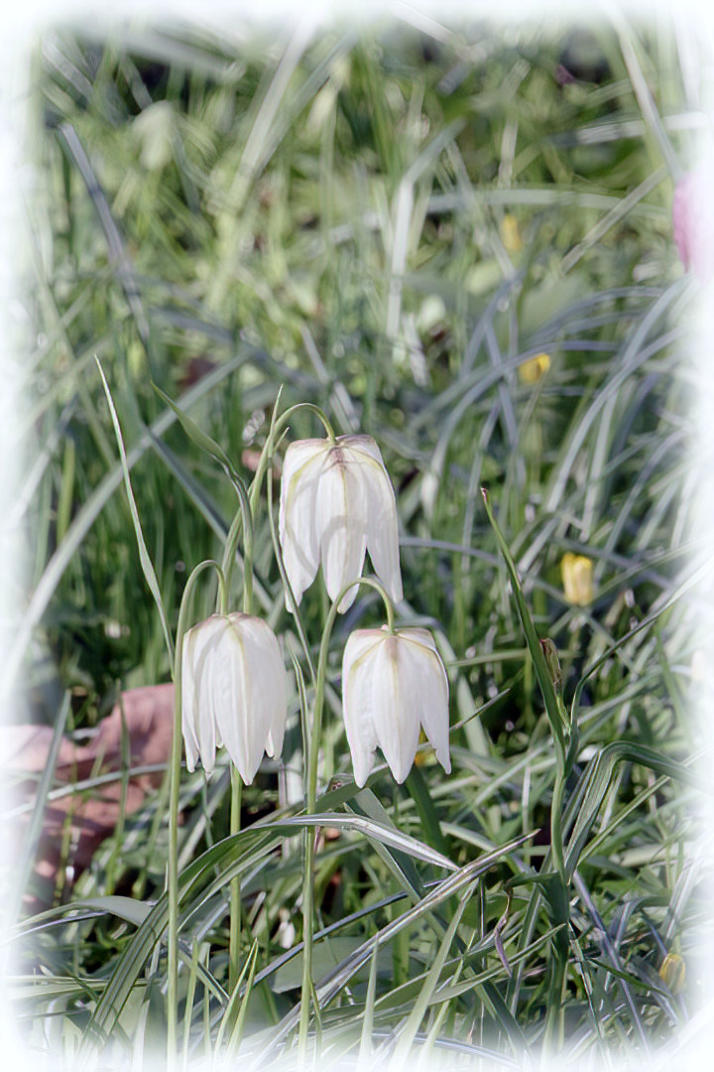 Fritillaria meleagris flowering in the grounds of Levens Hall.