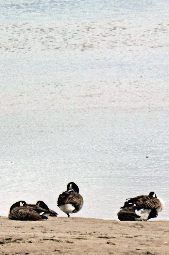 Canada Geese on the shore.