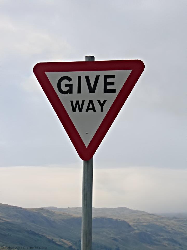 The give way sign at cross roads on Rosgill Moor.