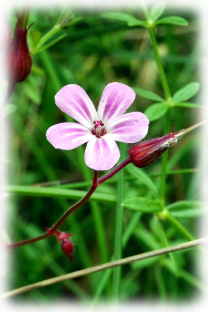 Herb Robert (Geranium roberianum) flowers from May to September.