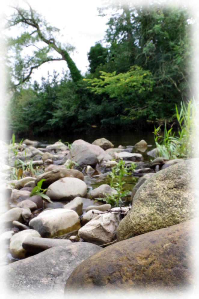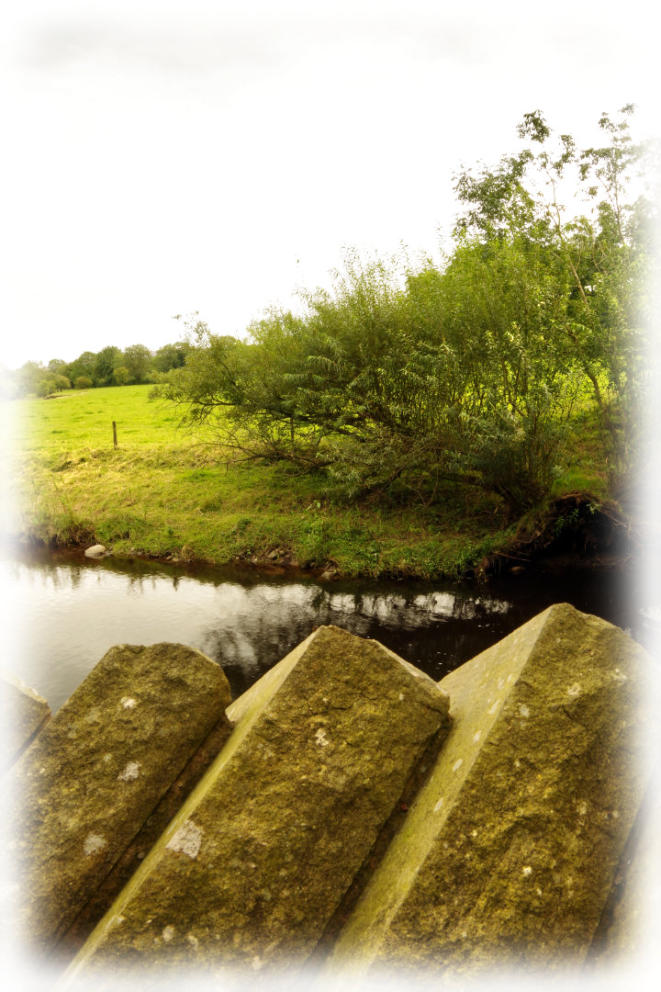 The view from rocky shore of River Wenning near Bridge in Wennington.