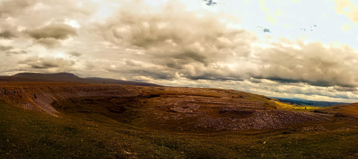 The view looking along the Pennine Bridleway towards Ribblesdale.