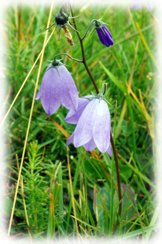 Harebell flowering at side of Pennine Bridleway in the Ingleborough Nature Reserve