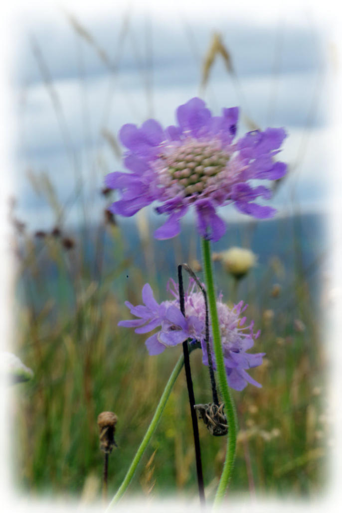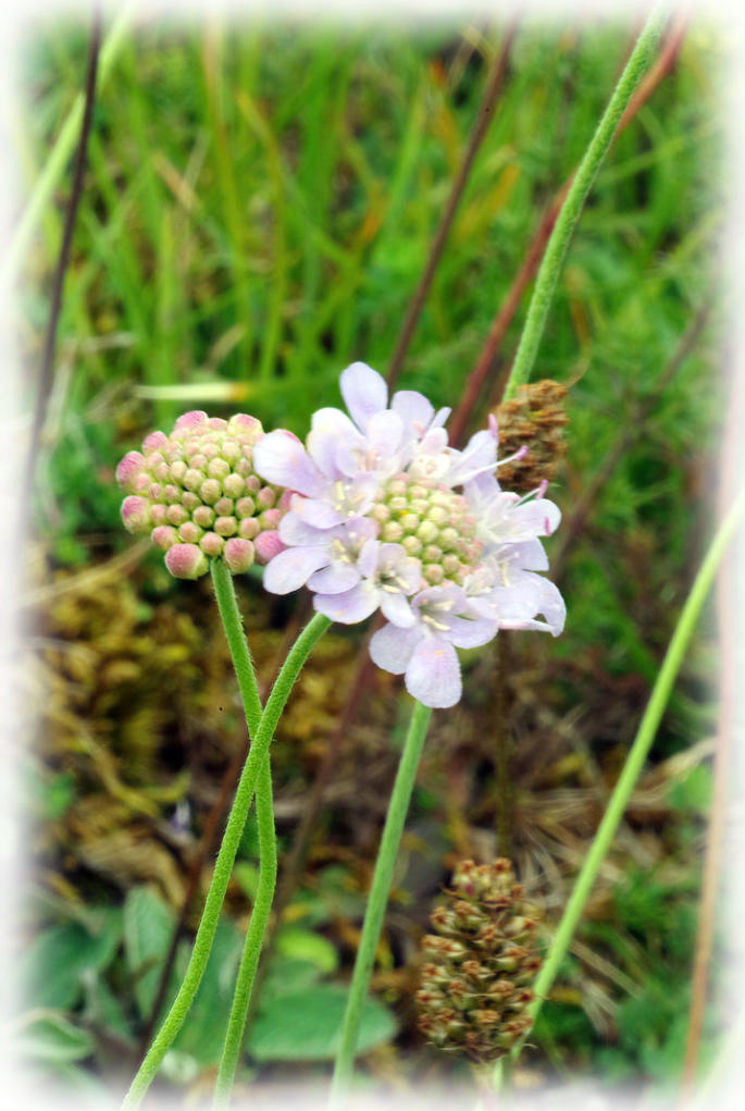 Field Scabious flowering at side of the Pennine Bridleway in the Ingleborough Nature Reserve
