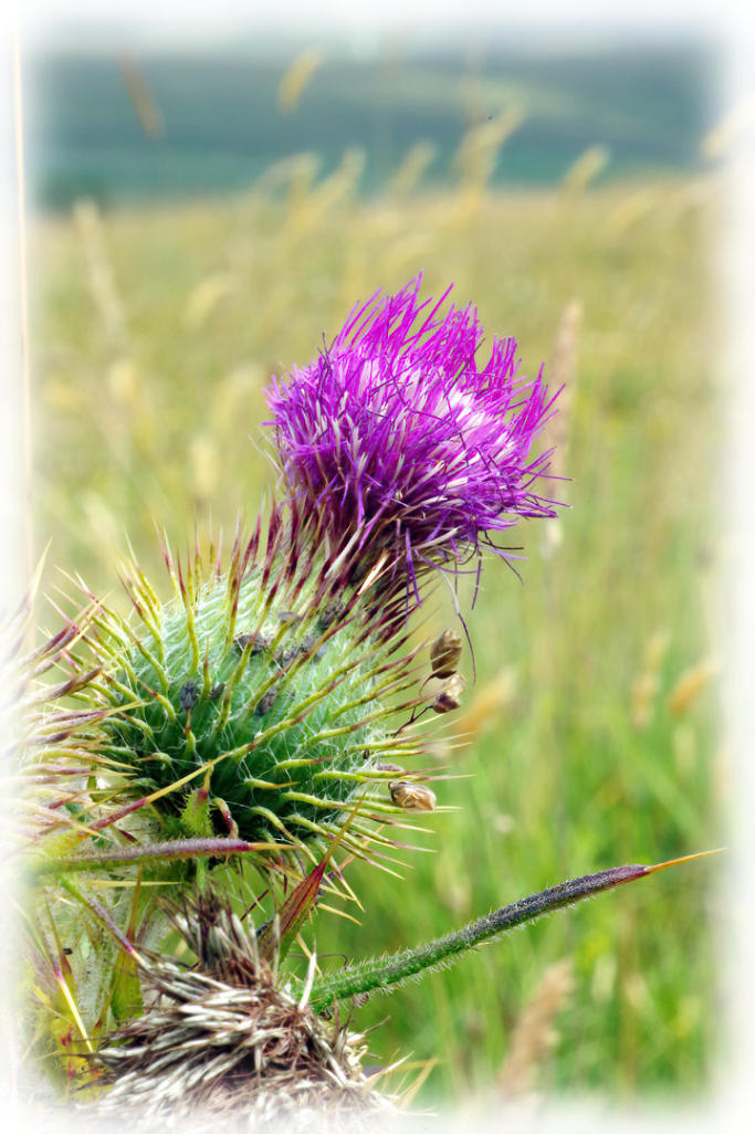 Thistle flowering at side of the Pennine Bridleway in the Ingleborough Nature Reserve