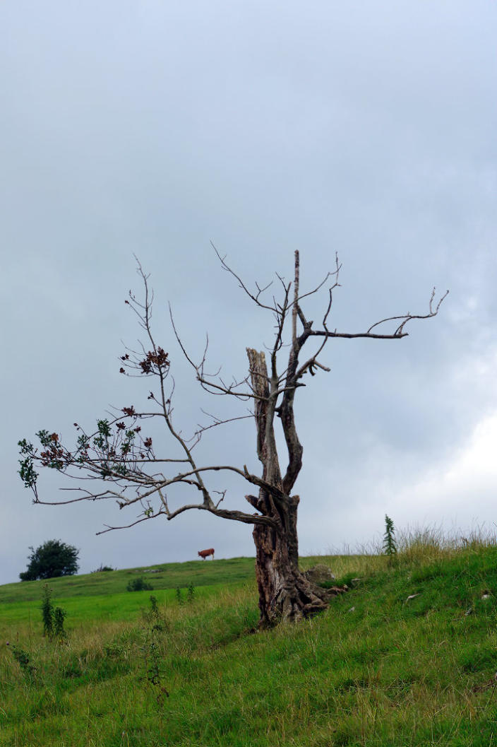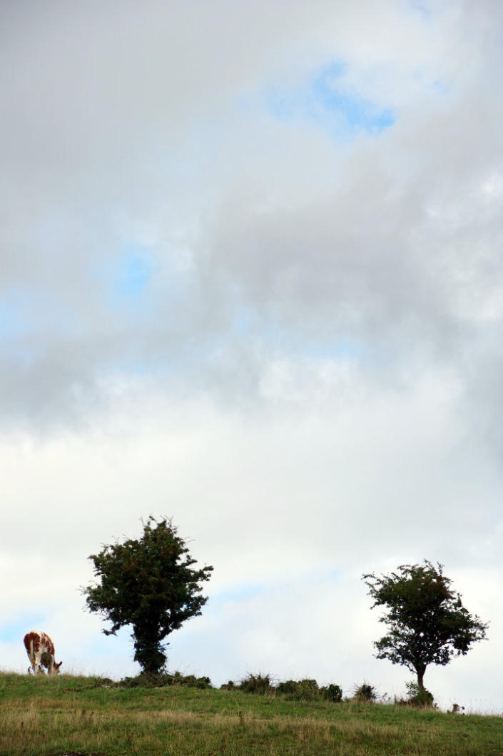 A cow on the skyline at side of the bridleway to Briggs House Farm.