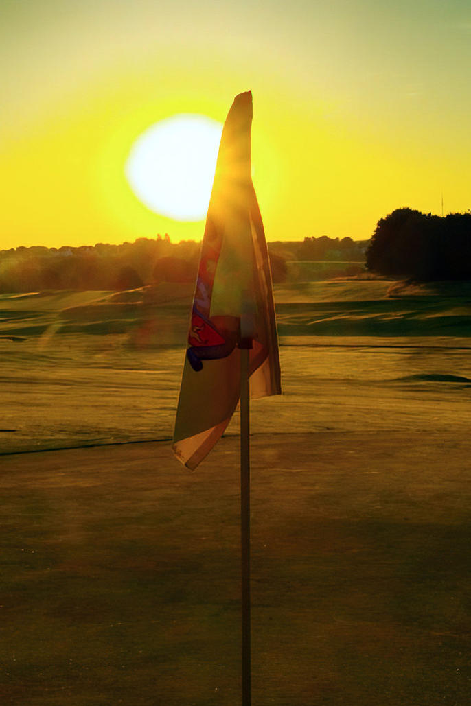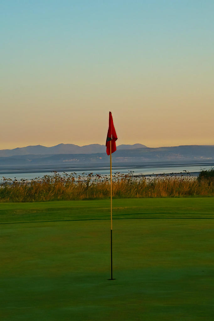 The view from the 1st green looking across Morecambe Bay towards the Lakeland Mountains.