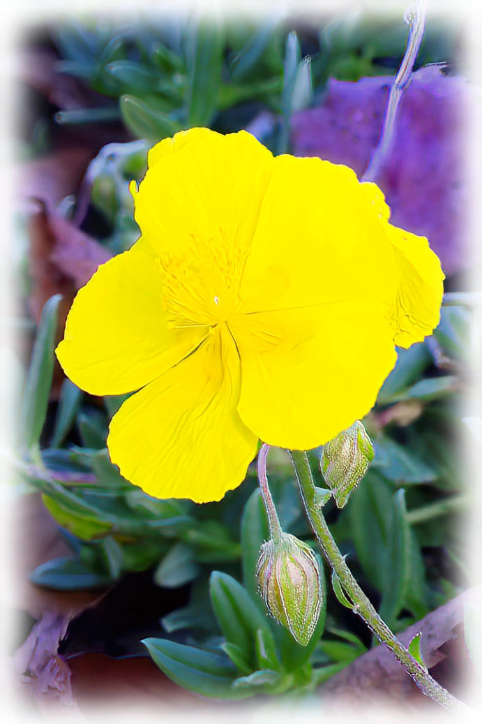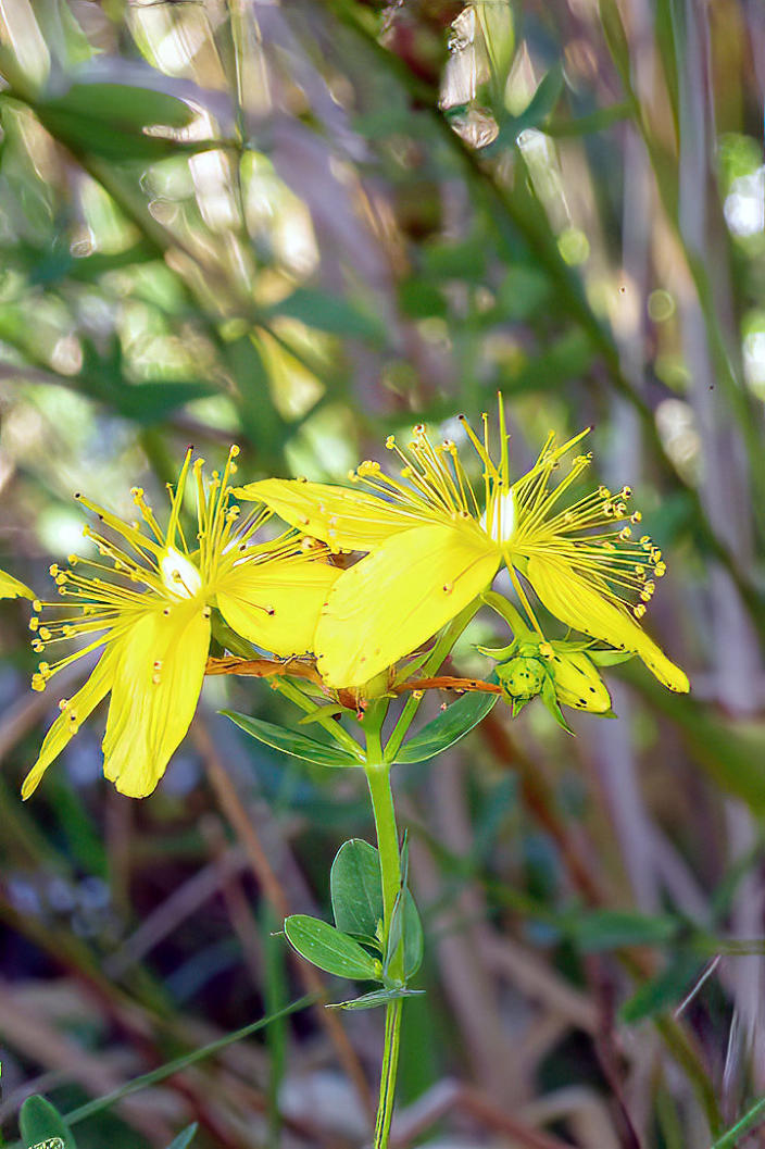 Perforate St.john’s-wort flowering at side of path through nature reserve.