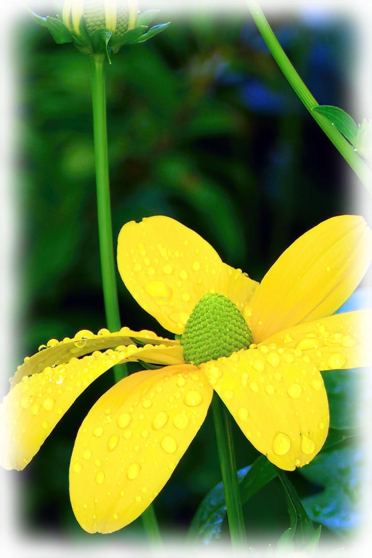 Rudbeckia laciniata ‘Luligold’ flowering in the back garden.