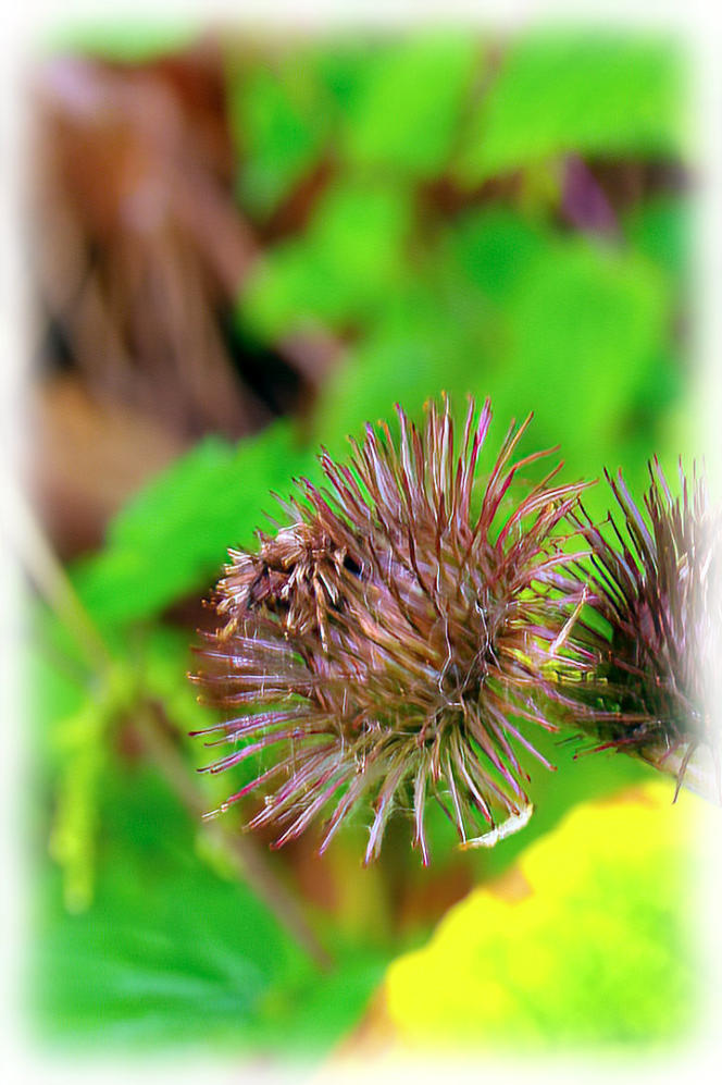 Burdock flower heads at side of the track up to the Greenkeeping department.
