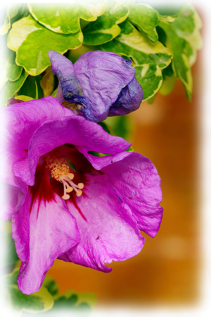 Hibiscus syriacus ‘Meehanii’ flowering in the back garden