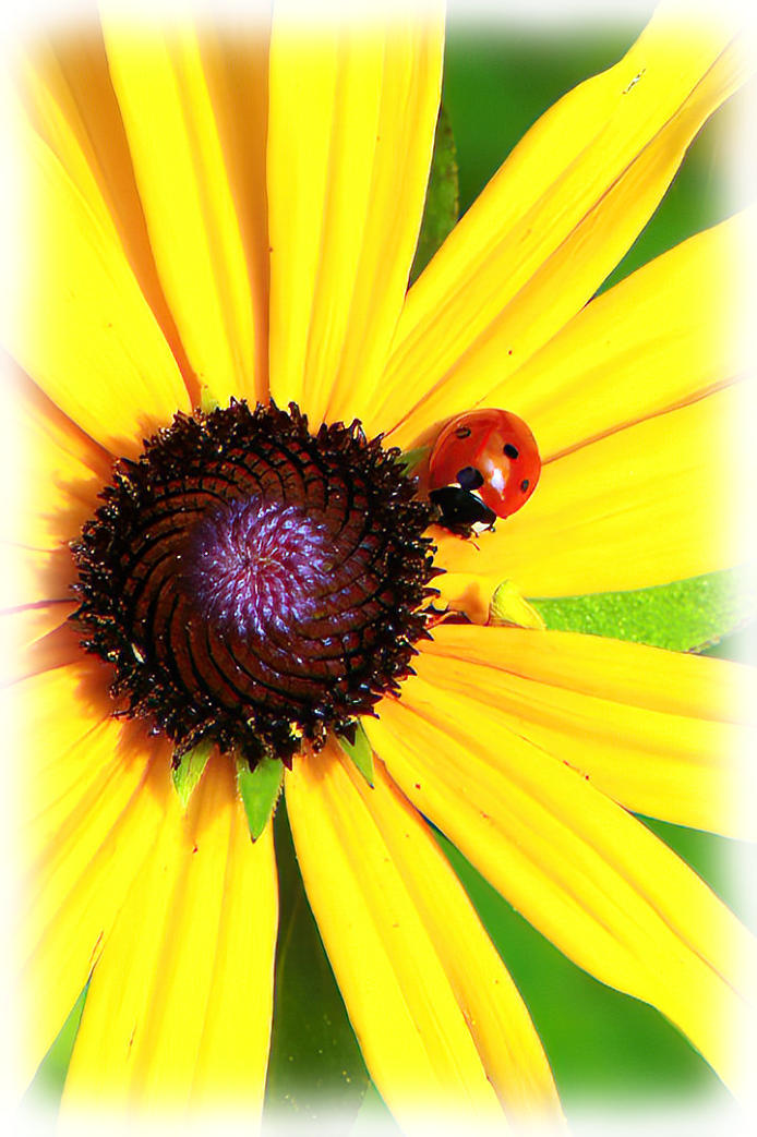 A Ladybird on Rudbeckia fulgida ‘ deamii’ in the back garden.