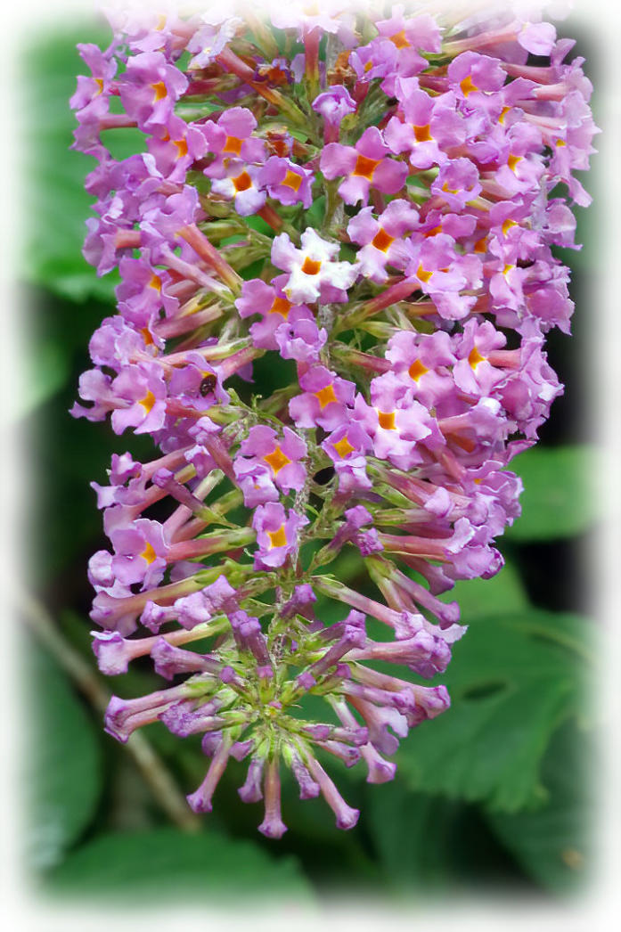 Butterfly bush flowering at side of the footpath.