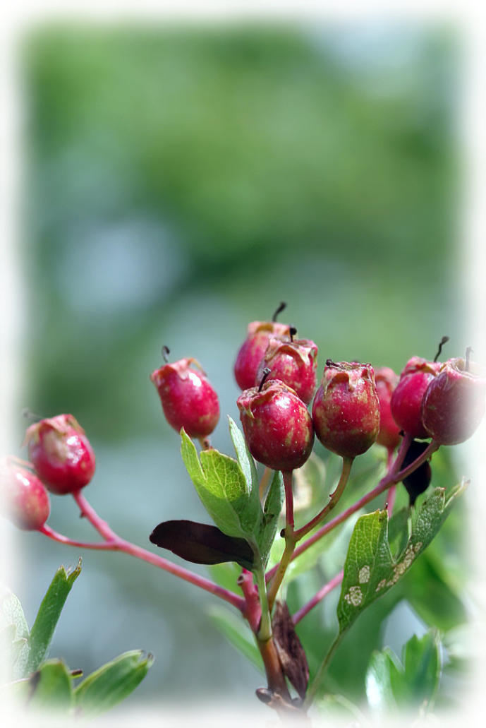 Hawthorn berries at side of the bridleway.