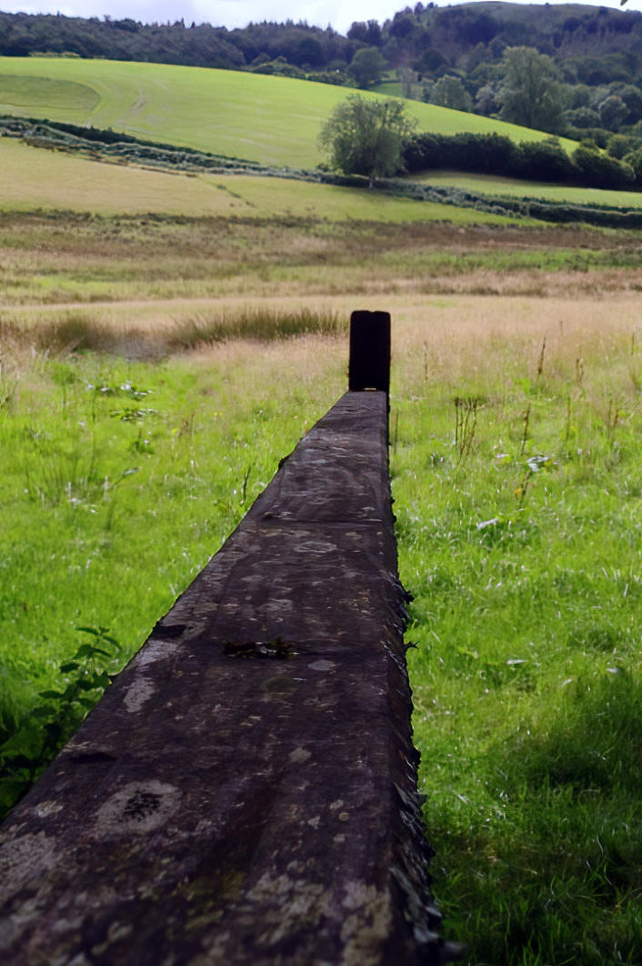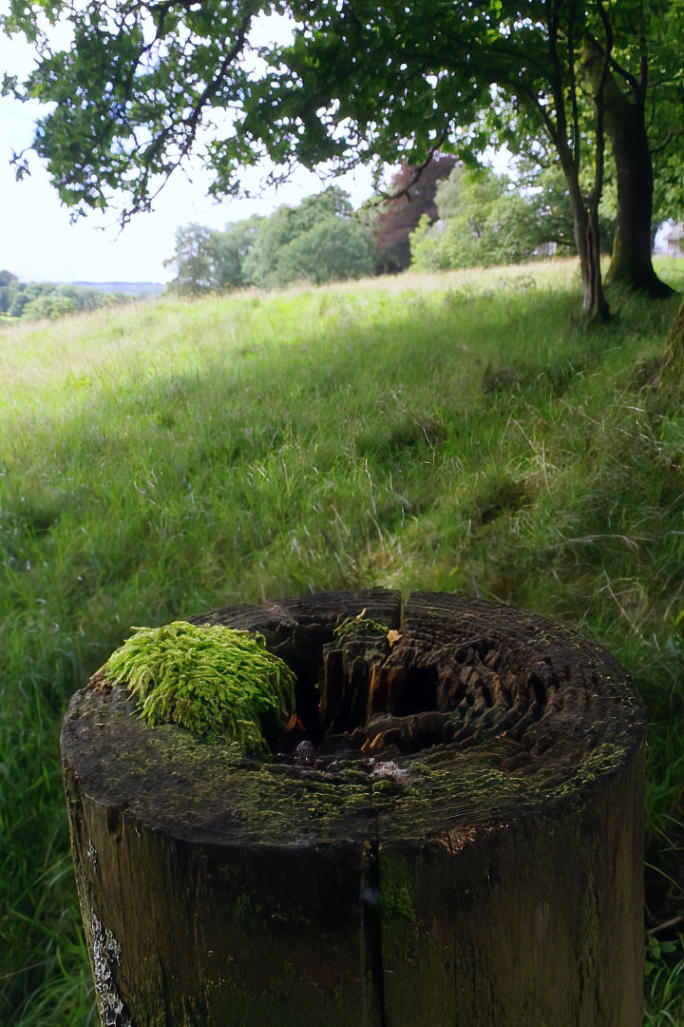 Moss on top of fence post at side of the bridleway.