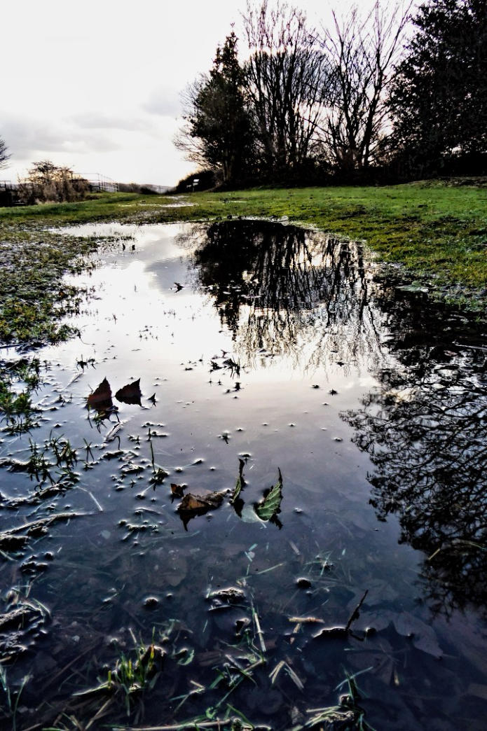 Reflections on the towpath of Lancaster Canal at the locks at Tewitfield