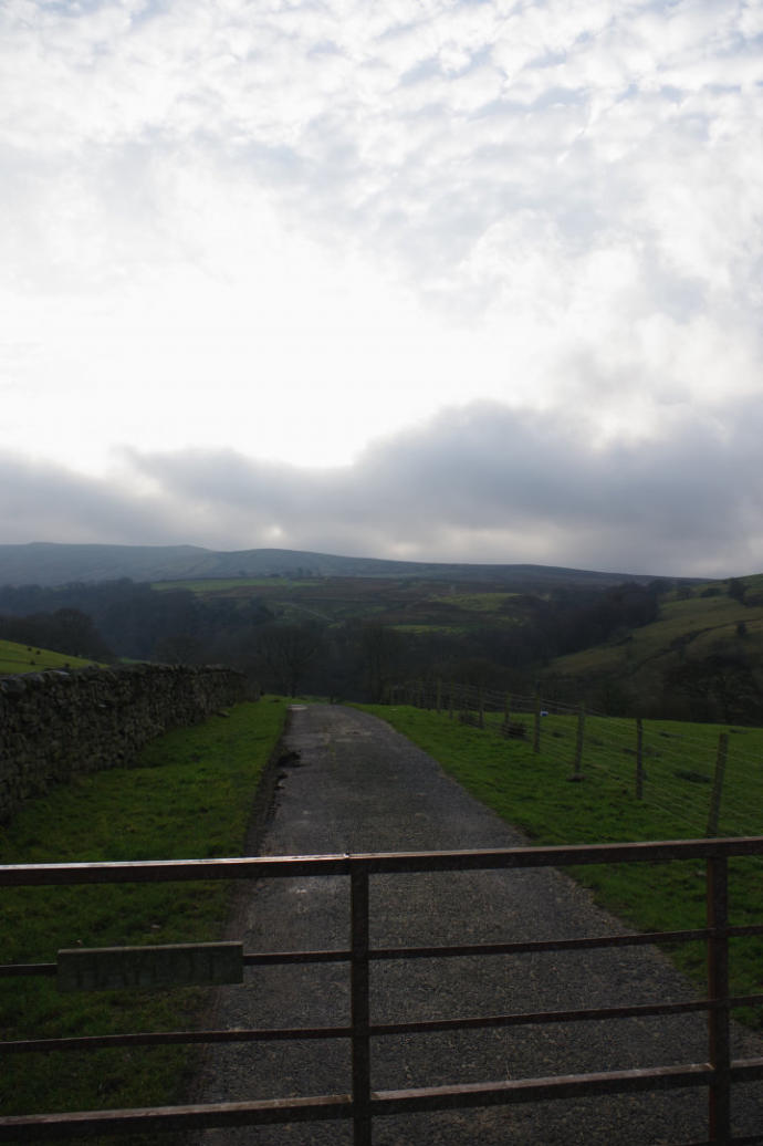 The view looking back to Haylot Farm on the climb up to Winder Farm.