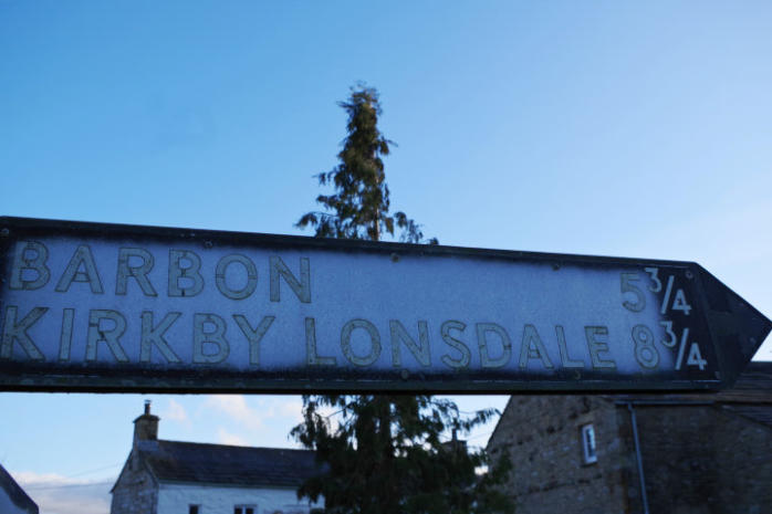 The road sign for Kirkby Lonsdale in Gawthrop.