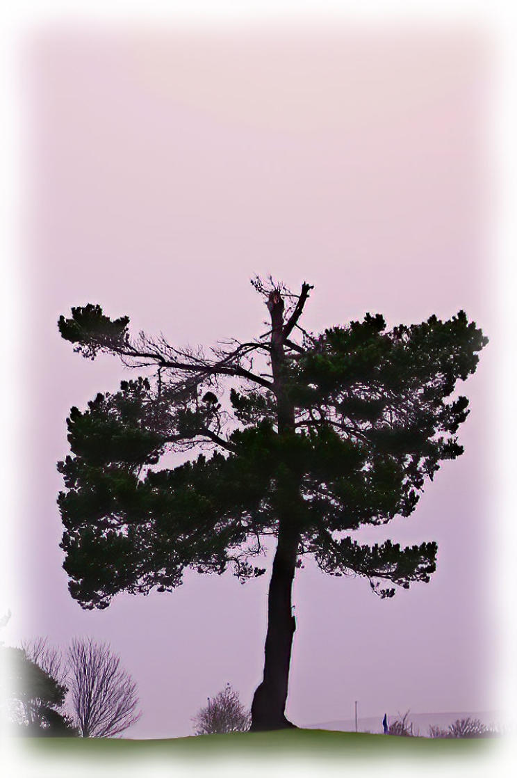 A storm damage pine at side of 9th fairway on Morecambe Golf Course.