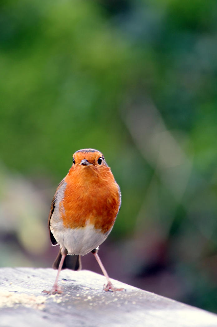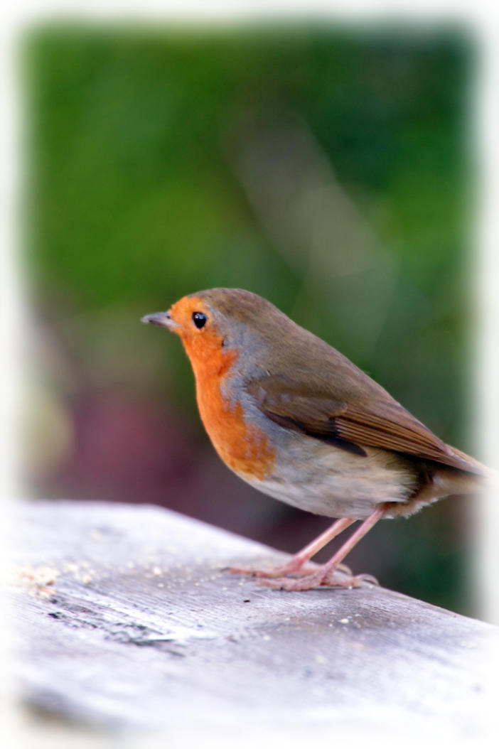 Robins near the bird feeding area outside the RSPB Visitor Centre