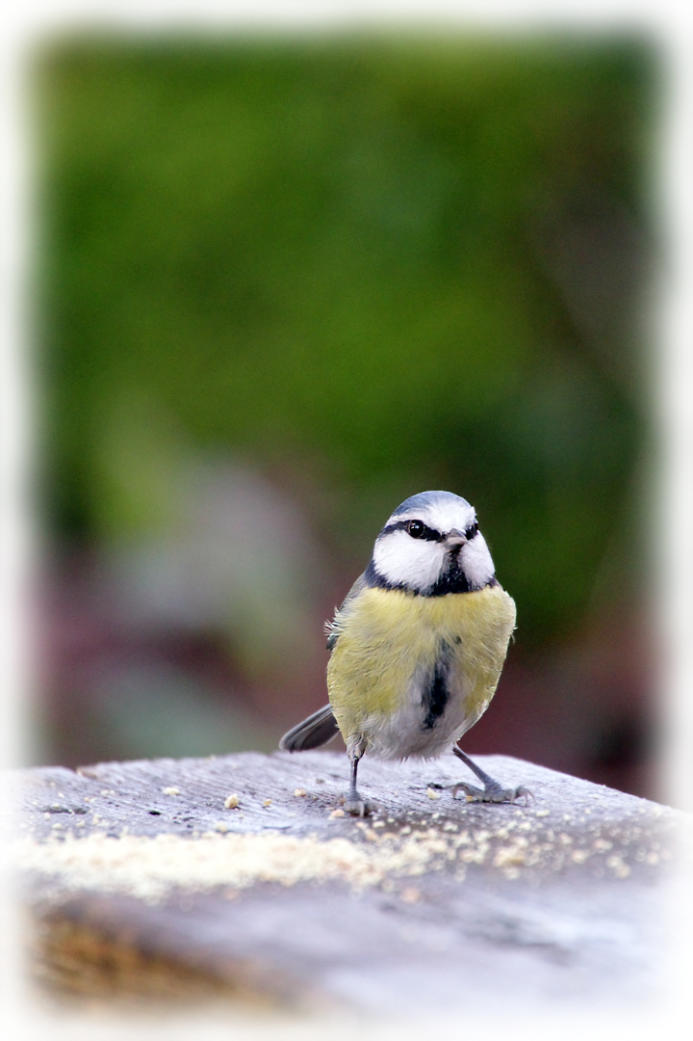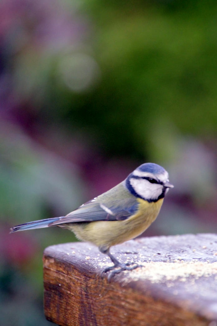 Blue tits near the bird feeding area outside the RSPB Visitor Centre.