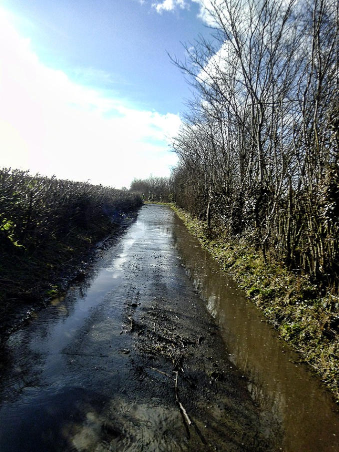 Sunlight on the bridleway as we followed it towards Burton-in-Kendal.