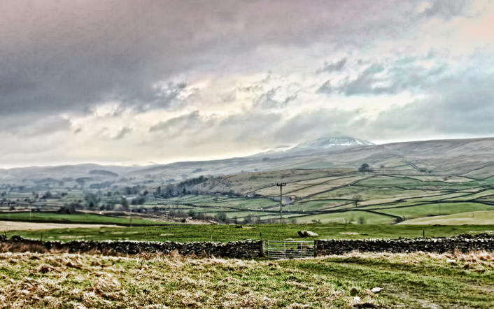 Panorama view looking up Ribblesdale