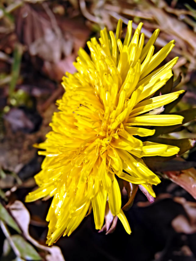 A dandelion in flower at side of the lane on the climb out of the Crake Valley