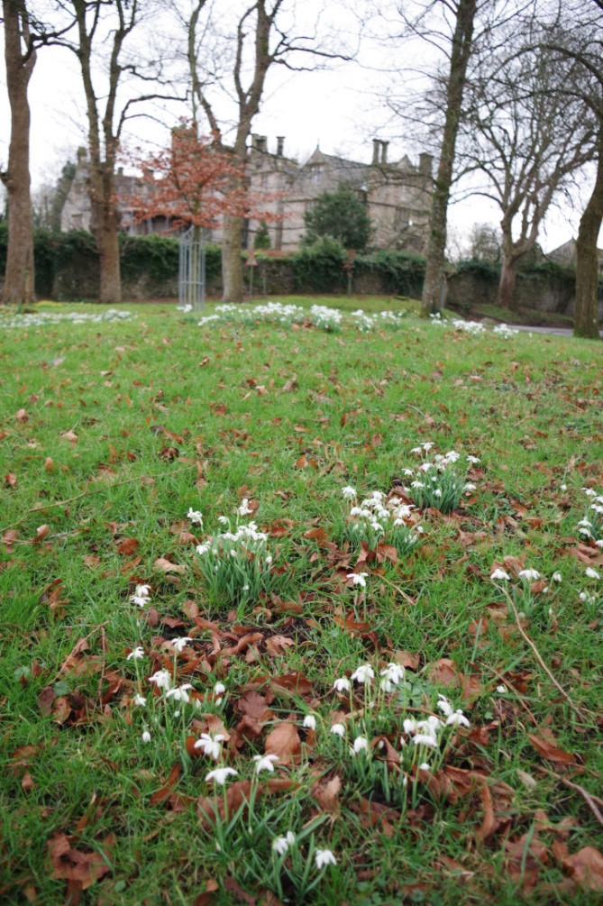 Snowdrop in flower on the village green in Borwick