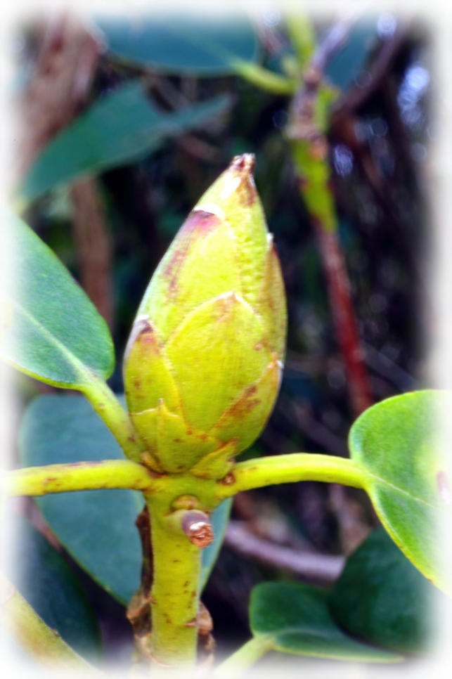 Rhododendron flower bud at back of the 16th tee on Morecambe Golf Course
