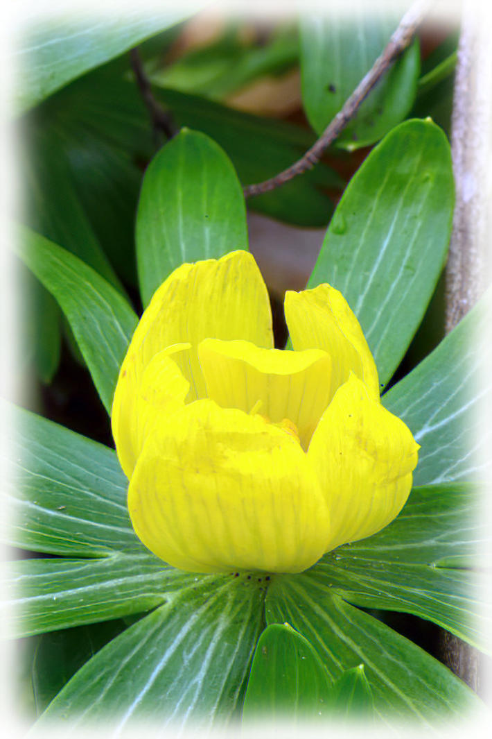 A closeup of Winter Aconite at side of the lane near Docker Hall Cottages.