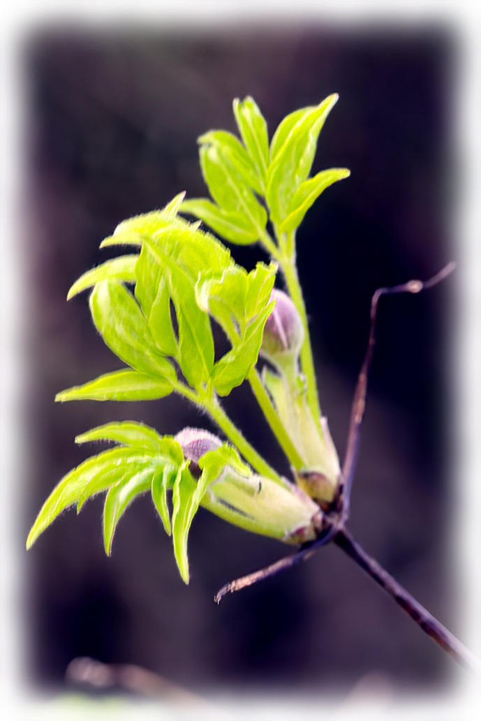 Flower buds of Clematis alpina ‘Constance’ in the back garden.